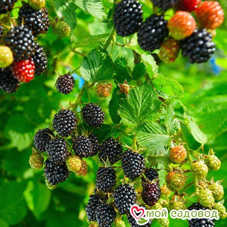 На плодовом побеге может быть 20–30 ягод весом до 7 г каждая. Веток у куста очень много, поэтому с одного растения можно собрать до 20 кг ягод, отличающихся прекрасным вкусом. Ежевика плодоносит с августа по сентябрь, в отличие от малины, ежевика может соседствовать с остальными растениями, не расползаясь на участке.